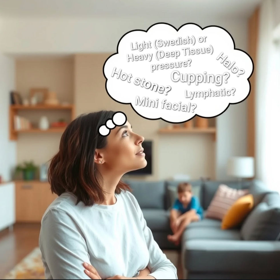 If you're pregnant, currently battling cancer, seeking a mini facial, halo, hot stone, cupping, lymphatic, body scrub, or acupressure with ear seed, we have special tabs to select before booking a massage. Specific sessions like mini facials may take away from massage time. Not every therapist does every massage type.